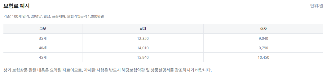 보험료 예시를 보여드리면 아래와 같습니다.