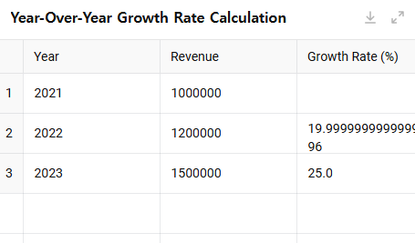 이 예제들을 통해 전년 대비 성장률을 정확히 계산하고, 이를 기반으로 데이터를 분석해 보세요. 실무에 적용하면 더욱 유용하게 사용할 수 있습니다.