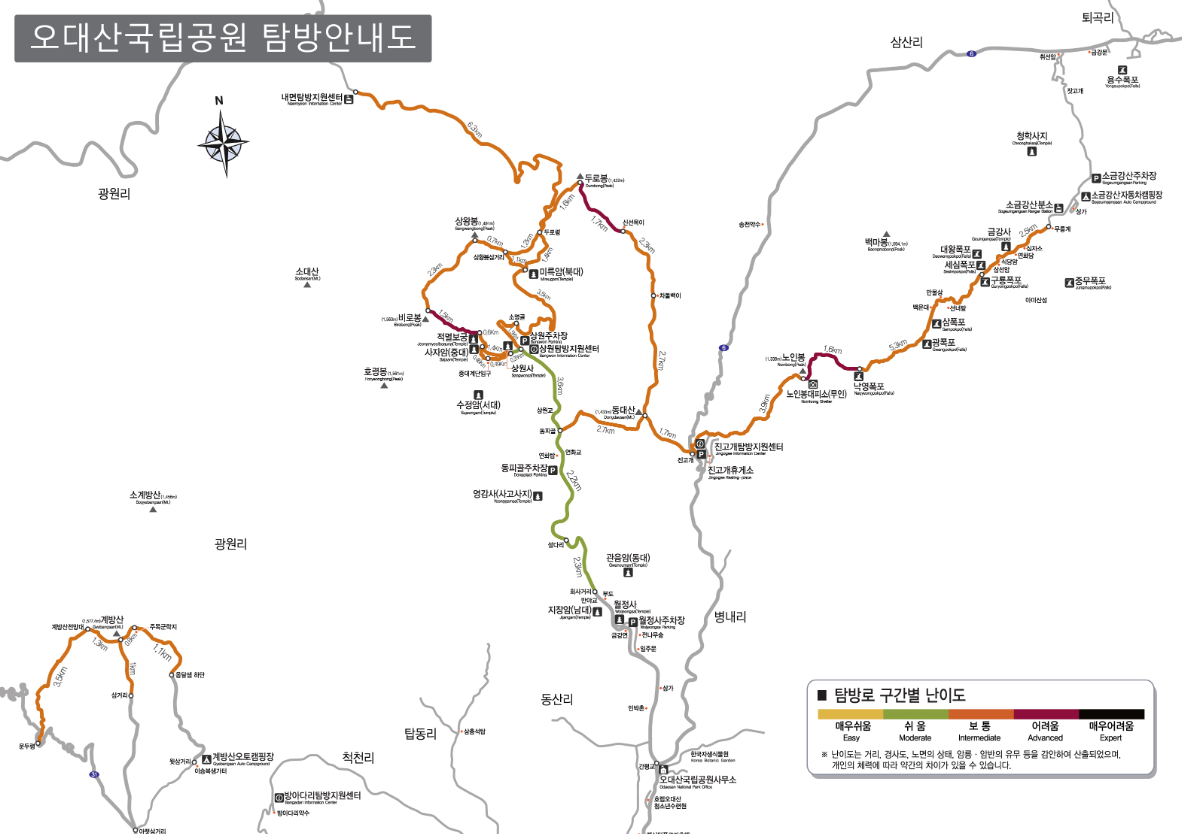오대산 등산코스 안내