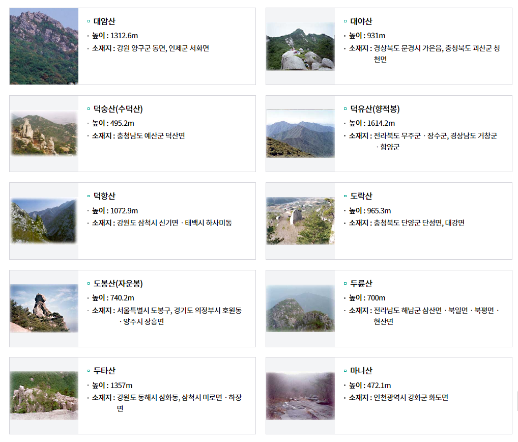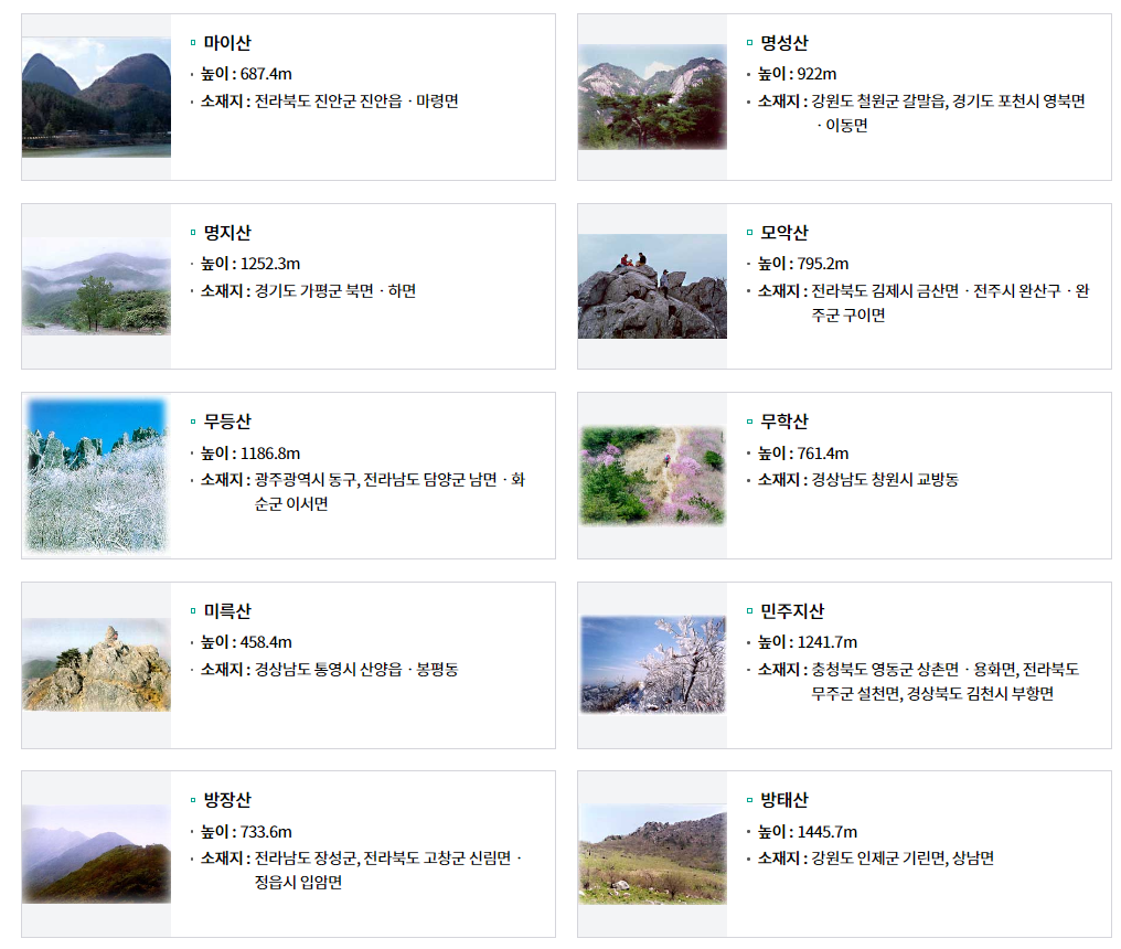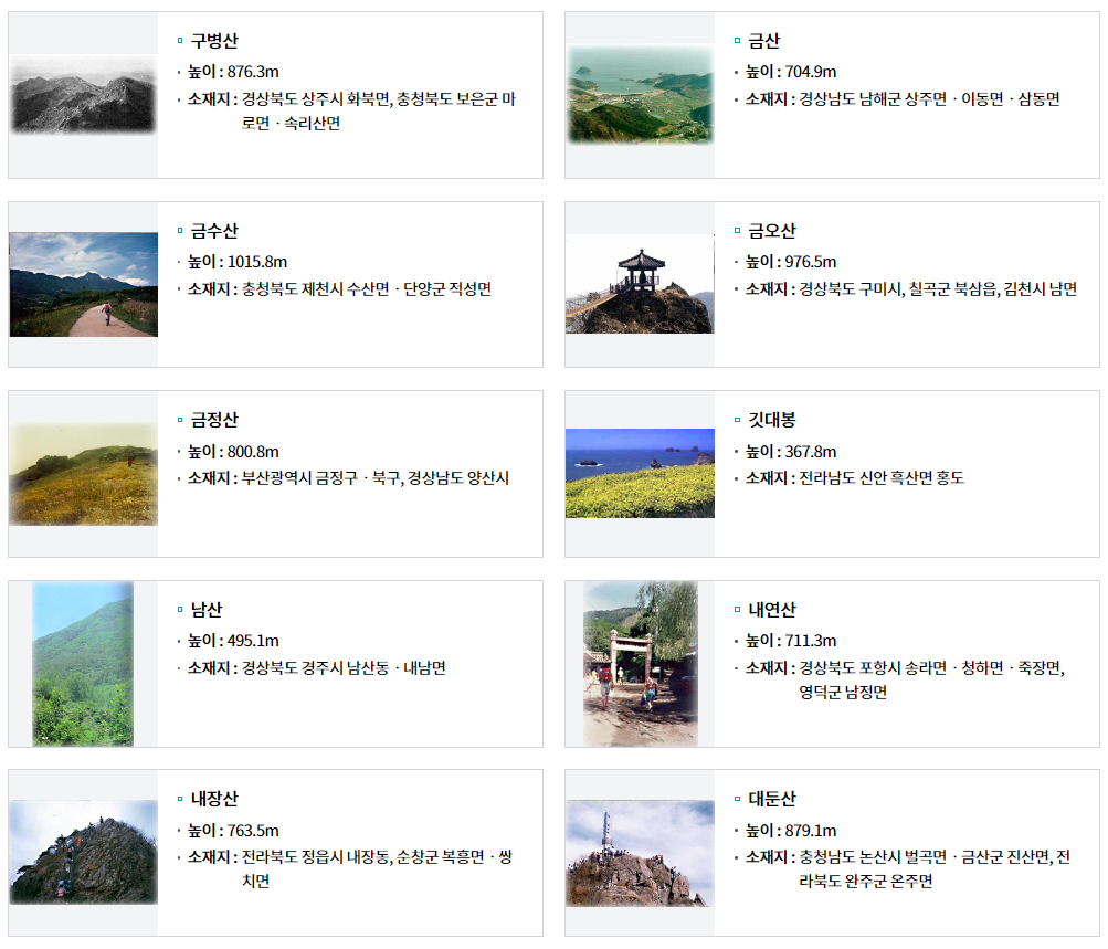 ✅ 100대명산의 선정 기준과 의미