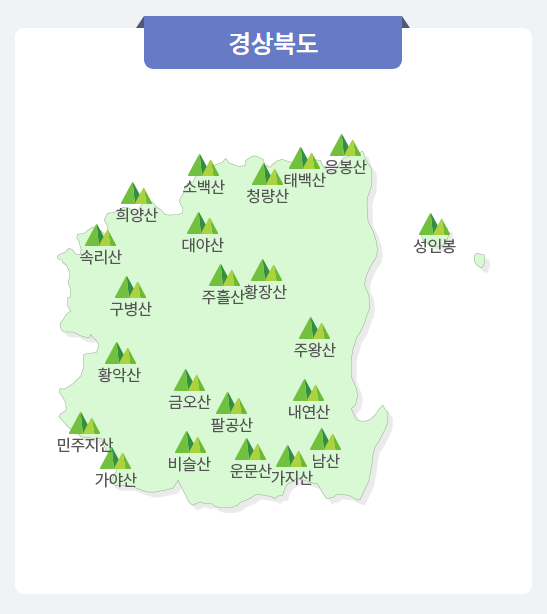 | 지역 | 산 | 특징 |