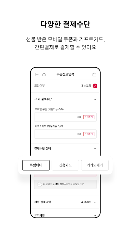 | 메뉴 주문 | 앱을 통해 메뉴를 미리 주문 가능 | 앱에서 메뉴 선택 후 주문 |