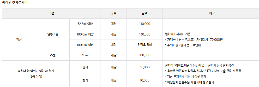 에어컨 설치비용 안내