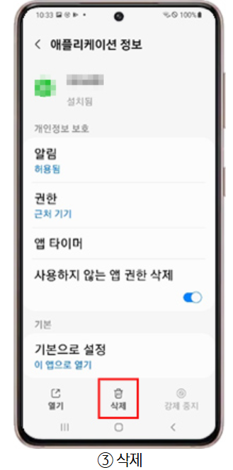 | 삭제 버튼 비활성화 | 비활성화 사용 | 시스템 앱 |