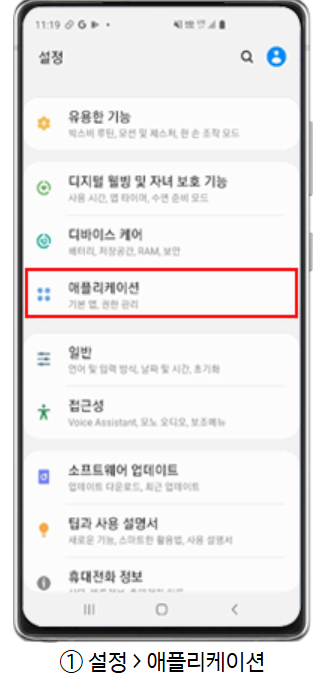 2. 또는, 설정 메뉴를 통해 앱을 삭제할 수도 있습니다. 설정 > 애플리케이션 > 애플리케이션 관리자에서 삭제하려는 앱을 선택합니다.