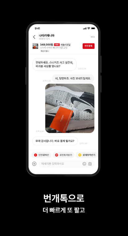 | 다양한 상품 검색 | 안전한 결제 시스템 | 빠른 거래 채팅 |