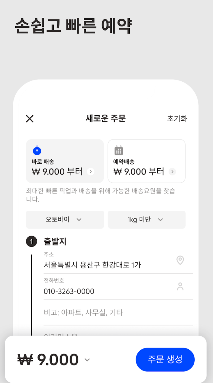 퀵 서비스 요금 조회