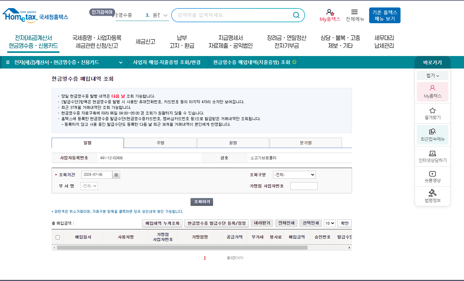 현금영수증 발급 기록 관리