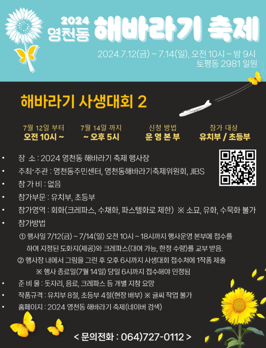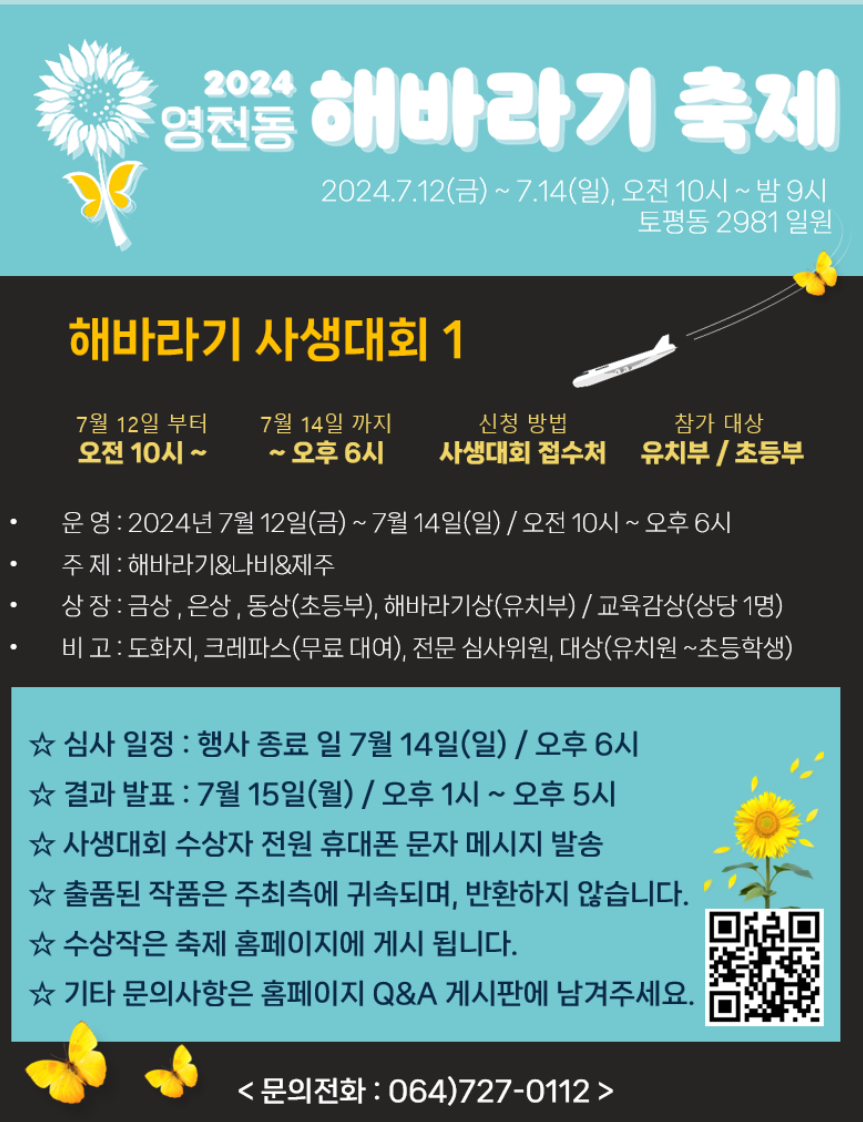 영천동 해바라기 축제에 대한 자세한 정보는 영천동주민센터(064-760-4651)로 문의하시기 바랍니다. 또한, 공식 홈페이지와 카카오맵을 통해 자세한 위치 안내와 길찾기 정보를 제공받을 수 있습니다.