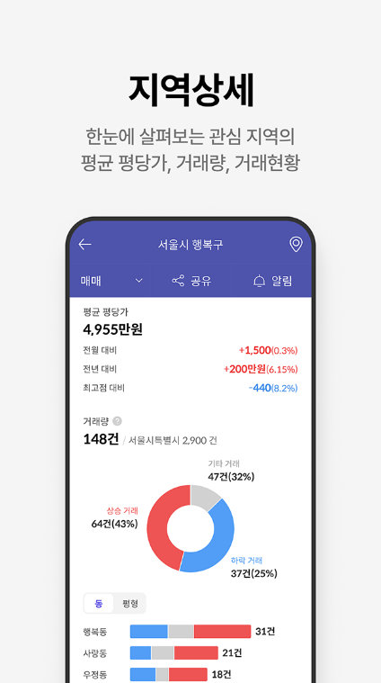 호갱노노 앱은 부동산 거래에 필요한 다양한 정보를 제공합니다. 이 앱의 주요 기능 중 하나는 지역별 부동산 시세 정보 제공입니다. 사용자는 원하는 지역의 아파트 시세를 쉽게 확인할 수 있습니다. 실시간 거래 데이터를 기반으로 한 시세 정보는 매우 정확하고 신뢰할 수 있습니다. 또한, 최근 거래 내역도 확인할 수 있어, 해당 지역의 거래 동향을 파악하는 데 유용합니다. 이 외에도, 호갱노노 앱은 아파트 단지별 상세 정보, 교육 환경, 교통 편의 시설 등의 정보를 제공합니다. 부동산 거래 시 고려해야 할 다양한 요소를 한눈에 확인할 수 있습니다.
