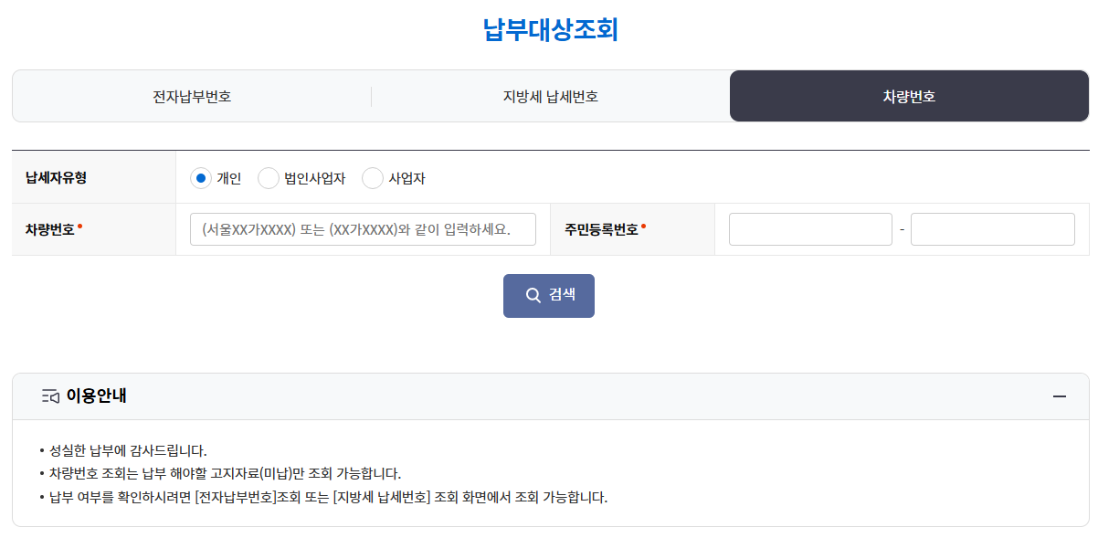 | 지방세 납부 | 전자고지 | 납부 내역 조회 |