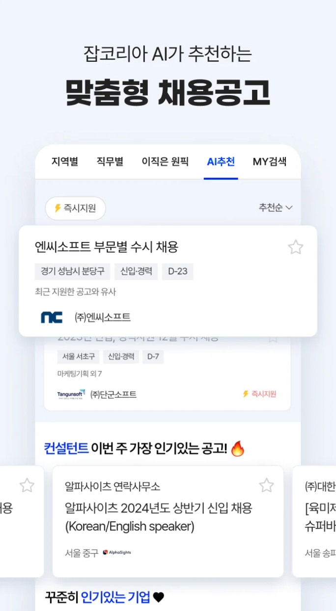 잡코리아 앱은 다양한 기능을 제공합니다. 첫째, 취업 정보 검색 기능입니다. 사용자는 원하는 직무와 지역을 선택해 맞춤형 채용 공고를 확인할 수 있습니다. 둘째, 이력서 작성 기능입니다. 앱을 통해 이력서를 작성하고, 지원할 수 있습니다. 셋째, 면접 준비 자료를 제공합니다. 면접 질문 리스트와 예상 답변 등을 통해 면접 준비를 철저히 할 수 있습니다. 이 외에도 기업 정보, 연봉 정보 등 다양한 취업 관련 데이터를 제공합니다.