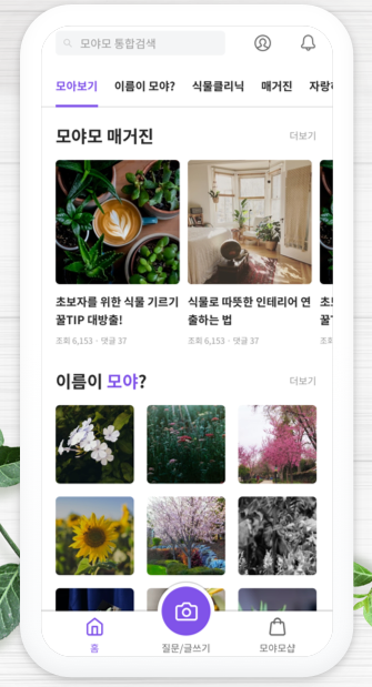 Q. 모야모 앱에서 제공하는 식물 식별 기능은 어떻게 사용하나요?