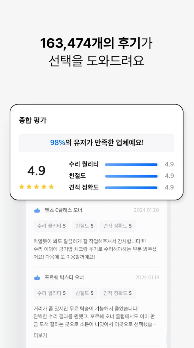 | 리뷰 확인 | 다른 사용자의 리뷰를 참고하세요. | 서비스 선택에 도움 |