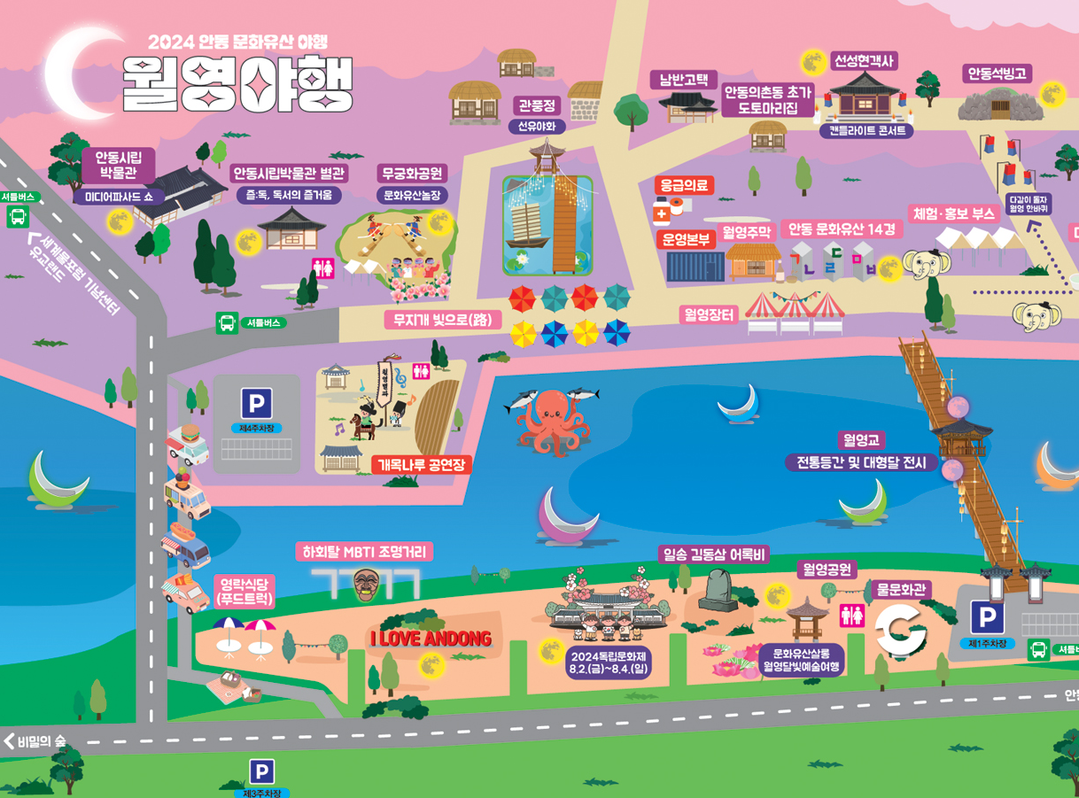 2024 안동 월영야행 축제 알아보기 | 불꽃놀이 | 문화유산 | 주차장 안내 | 배치도
