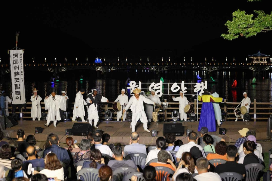 월영야행은 매년 여름철에 열리는 안동의 대표적인 야간 축제로, 월영교와 그 주변 지역에서 다양한 문화유산 관련 프로그램이 진행됩니다. 주요 행사로는 전통등간 전시와 안동문화살롱(토크콘서트), 하회별신굿탈놀이, 안동 놋다리 밟기 등이 있으며, 독서의 즐거움을 느낄 수 있는 특별 전시도 마련되어 있습니다. 안동의 유무형 문화유산을 생생하게 체험할 수 있는 특별한 기회가 될 것입니다.