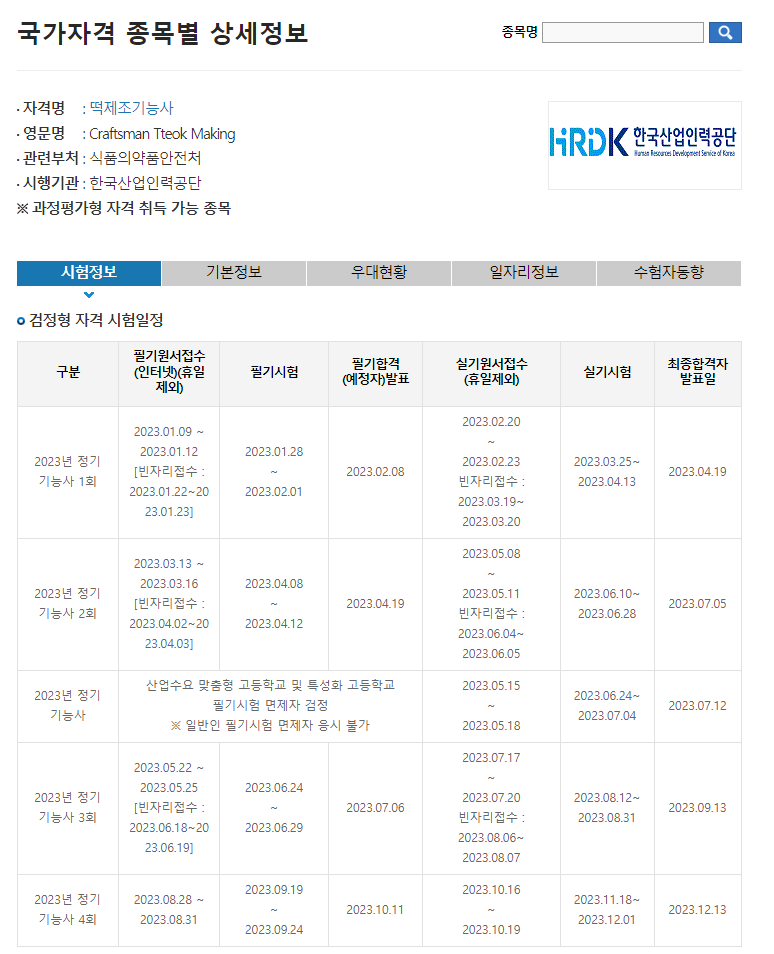 비교적 신설된 자격증이지만, 떡 제조기능사 자격증은 높은 합격률과 함께 다양한 분야에서 활용 가능하다는 장점이 있습니다. 특히 인터넷 및 배달업종이 활성화되며 떡집 창업을 준비하시는 분들이 많아졌습니다. 합격율은 60~70%로 높은 편이니 도전하시는 것도 좋을 것 같습니다.
