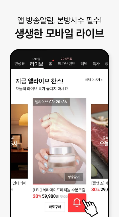 A. 실시간 방송 시청, 장바구니 관리, 즐겨찾기 기능, 알림 설정 등 다양한 기능을 제공합니다.
