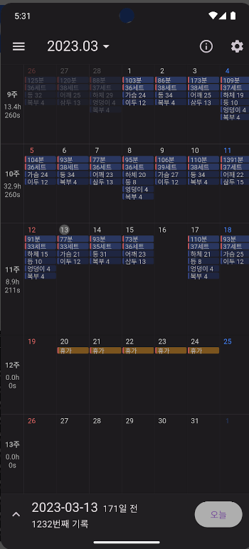- 운동 기록 기능