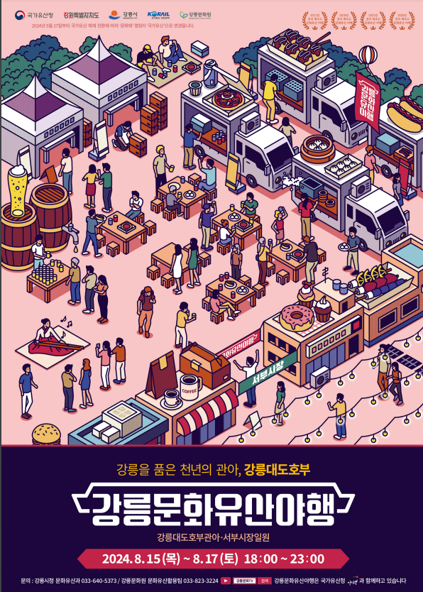 | 2024.08.15 ~ 2024.08.17 | 강원특별자치도 강릉시 임영로131번길 6 강릉대도호부관아 | 033-823-3224 |