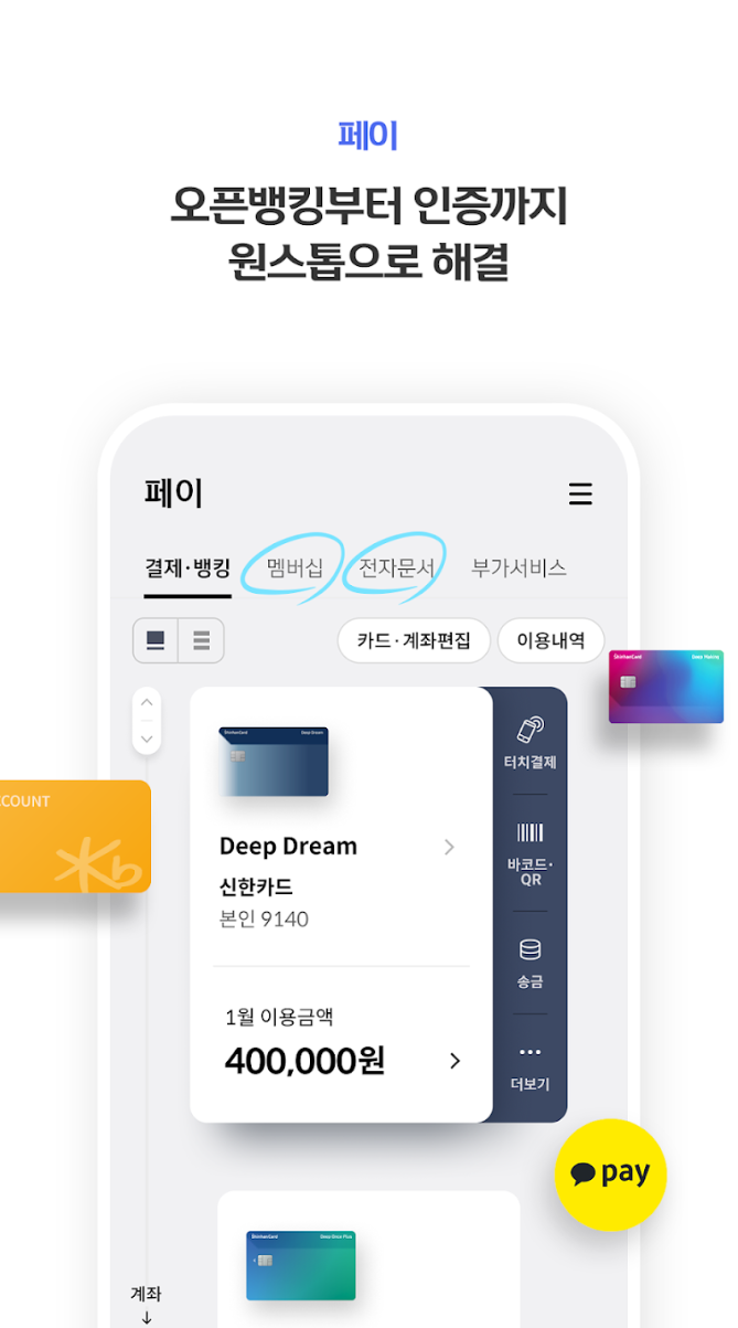 | 앱 실행 후 로그인 | 간편 결제 서비스 | 보안 강화 |