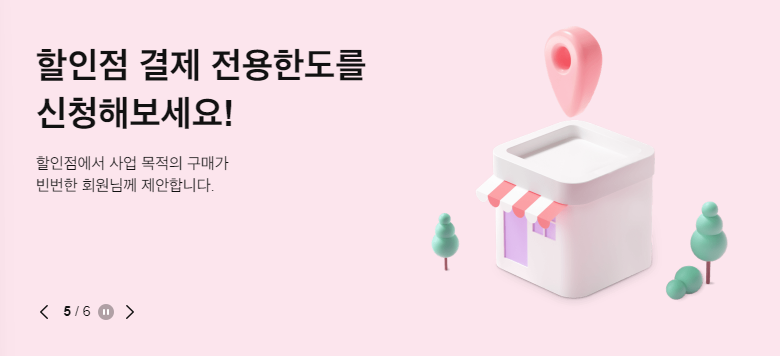| 다양한 가맹점에서 혜택 적용 | 포인트를 통해 추가 할인이나 상품 구매 가능 | 이벤트 참여를 통해 다양한 상품 제공 |