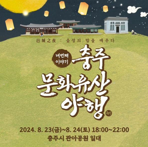 2024 충주 문화유산 야행은 충주의 역사와 문화를 경험할 수 있는 특별한 기회입니다. 이틀 동안 펼쳐지는 다양한 프로그램들은 방문객들에게 중원의 풍부한 문화유산을 체험할 수 있는 기회를 제공하며, 충주의 전통과 현대가 어우러진 특별한 시간을 선사합니다. 충주의 아름다운 밤을 체험하며, 지역 문화를 새롭게 이해할 수 있는 이 축제를 통해 충주의 매력을 다시 한번 발견해보세요.