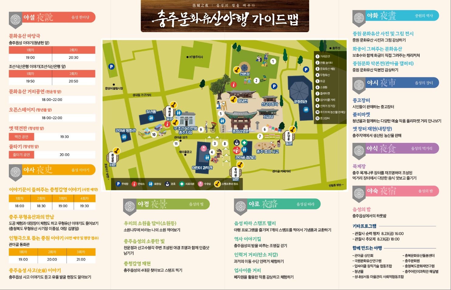 충주 문화유산 야행 축제 프로그램 | 맛집 | 공연 | 지도 | 가이드맵 | 인형극 사전예약 | 가이드맵