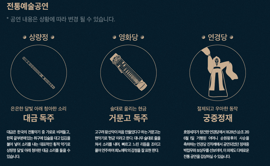 - 창덕궁의 아름다운 야경과 함께하는 전통예술 공연