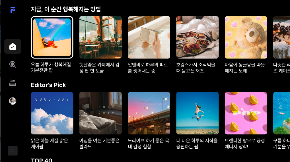 | 맞춤형 추천 | 고음질 스트리밍 | 오프라인 재생 |