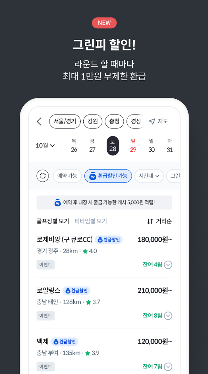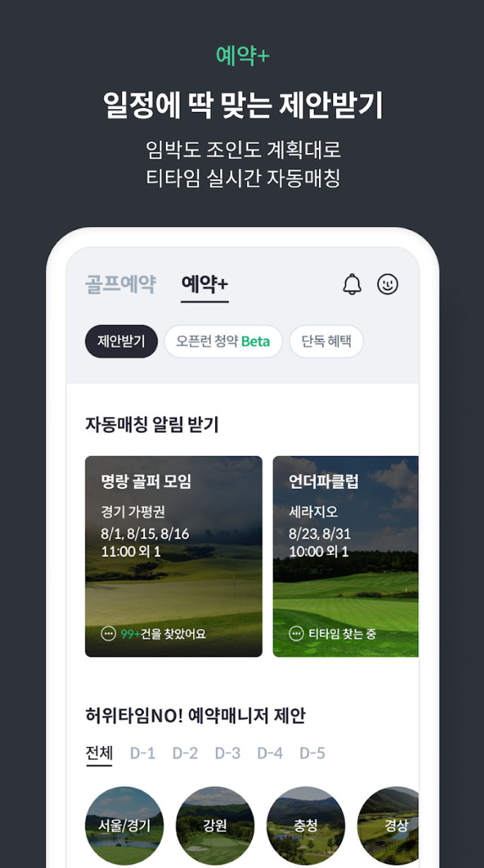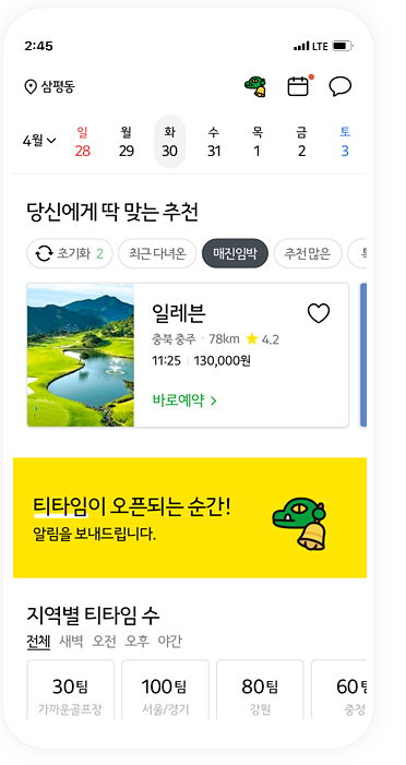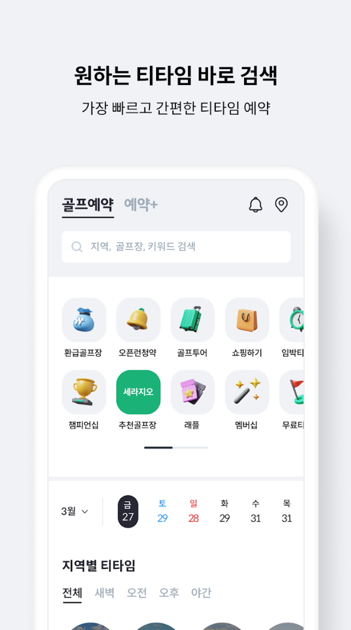 - 앱 설정을 완료한 후 골프 예약을 시작하세요.