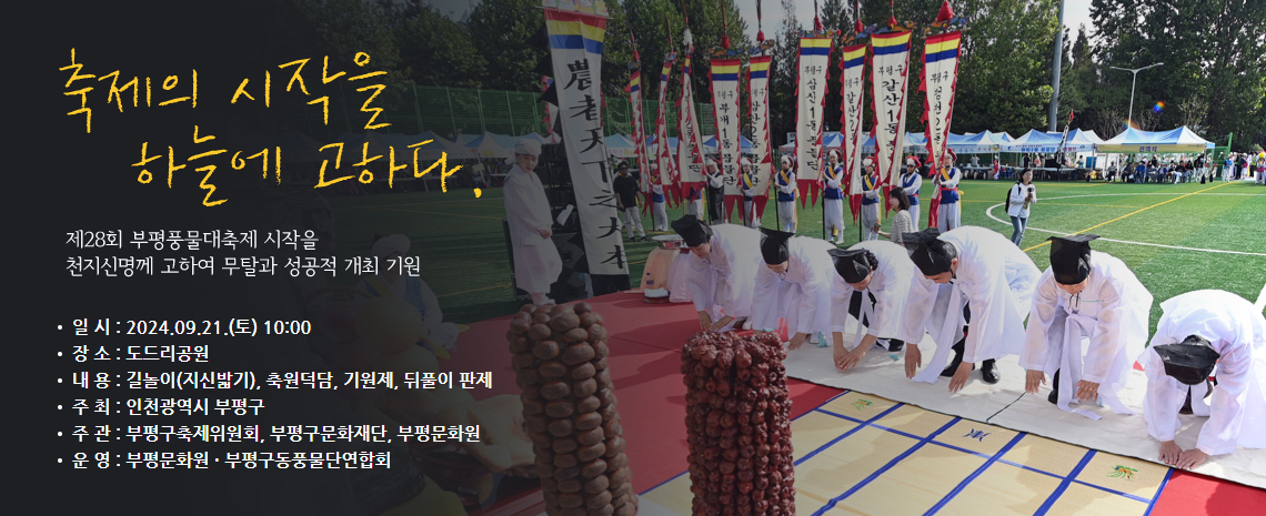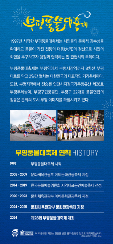 2024년 제 28회 인천 부평풍물대축제 | 프로그램 | 교통주차 | 우회노선 | 도로통제 | 먹거리 | 초대가수 | 불꽃놀이