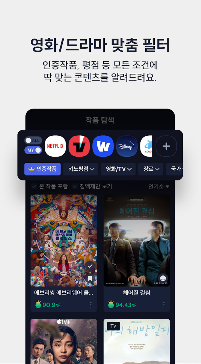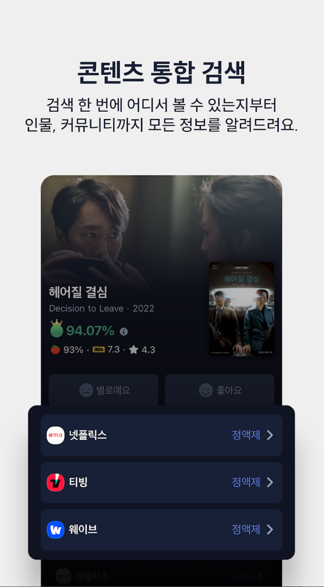 | 스트리밍 연동 | 구독 서비스와 연결 | 시청 가능한 작품 확인 |