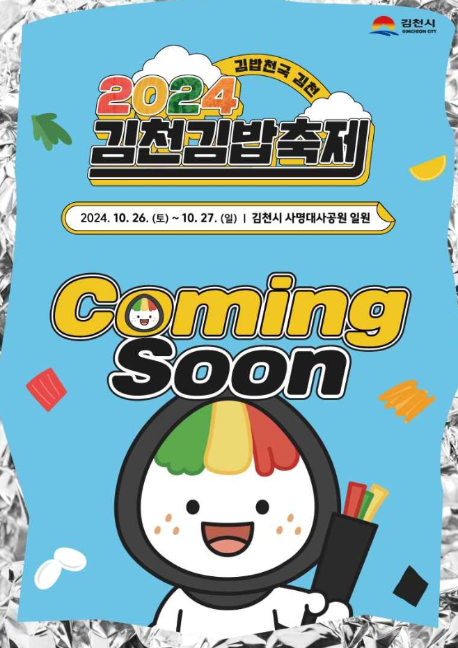 김천에서 열리는 2024 김천김밥축제는 김밥과 김천을 잇는 따뜻한 이야기와 유쾌한 프로그램들로 가득 찬 행사입니다. 이번 축제는 김밥에 대한 추억과 공감, 희망을 나누며 긍정적인 정서를 경험할 수 있는 특별한 기회를 제공합니다. 많은 사람들이 모여 즐길 수 있는 다양한 프로그램과 이벤트가 준비되어 있으니, 놓치지 마세요!