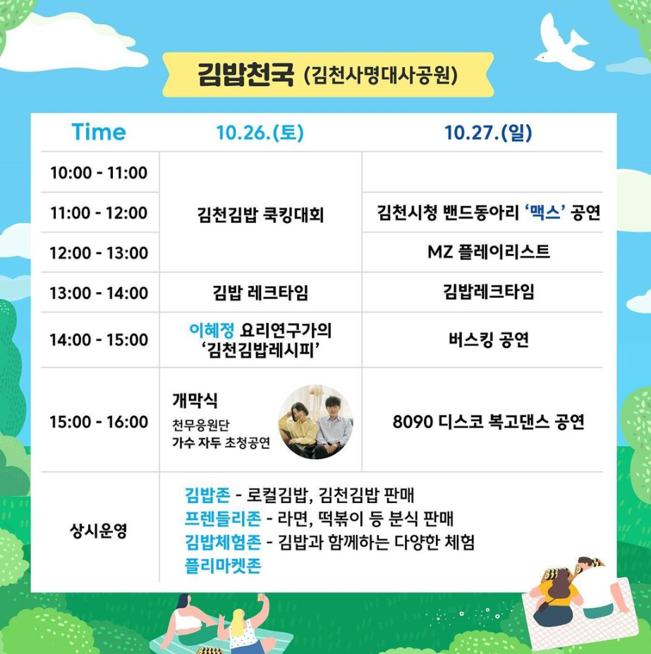 ⭐ 위에서 언급한 김천김밥축제는 지역사회의 화합과 김밥에 대한 사랑을 기념하는 행사입니다.