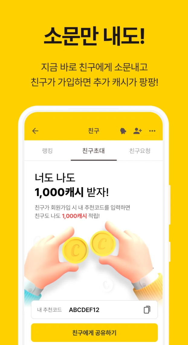 매일 앱에 접속하여 출석 체크를 하면 추가 포인트를 받을 수 있습니다. 앱 내 이벤트와 미션에 적극 참여하세요. 친구를 초대하면 서로에게 포인트 혜택이 주어집니다.