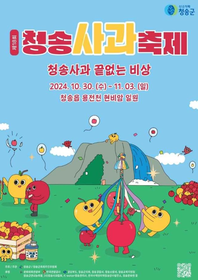 | 청송사과축제 | 2024.10.31 ~ 2024.11.03 | 경상북도 청송군 청송읍 금월로 269 |