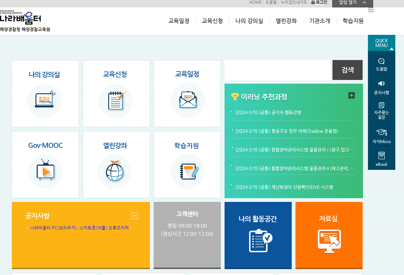 해양경찰 나라배움터 홈페이지 바로가기 https://kcg.nhi.go.kr/