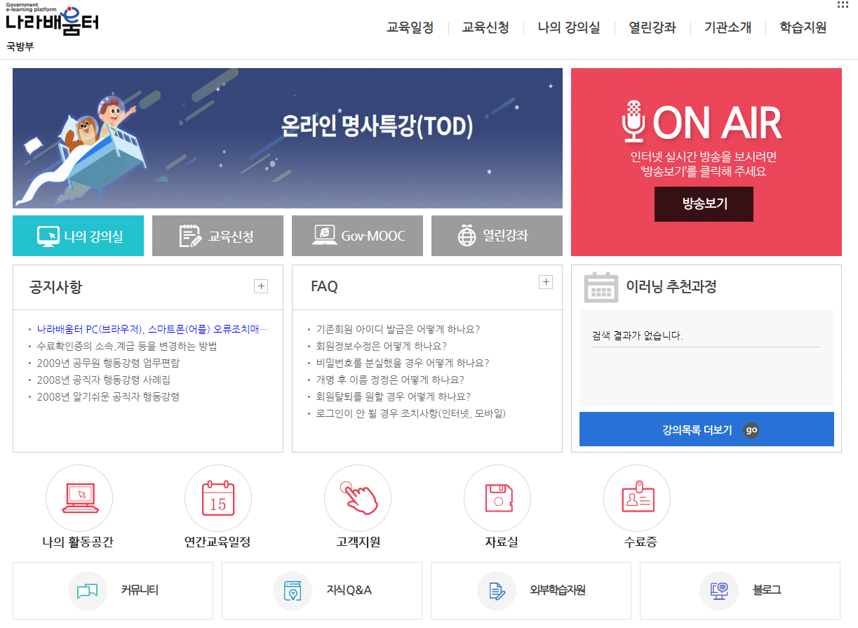 국방부 나라배움터 홈페이지 바로가기 FAQ