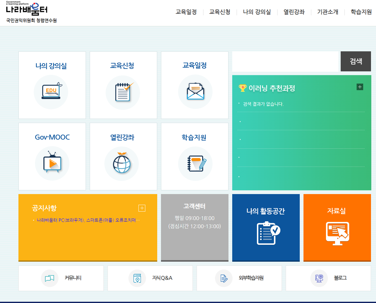 청렴연수원 나라배움터의 지원 서비스
