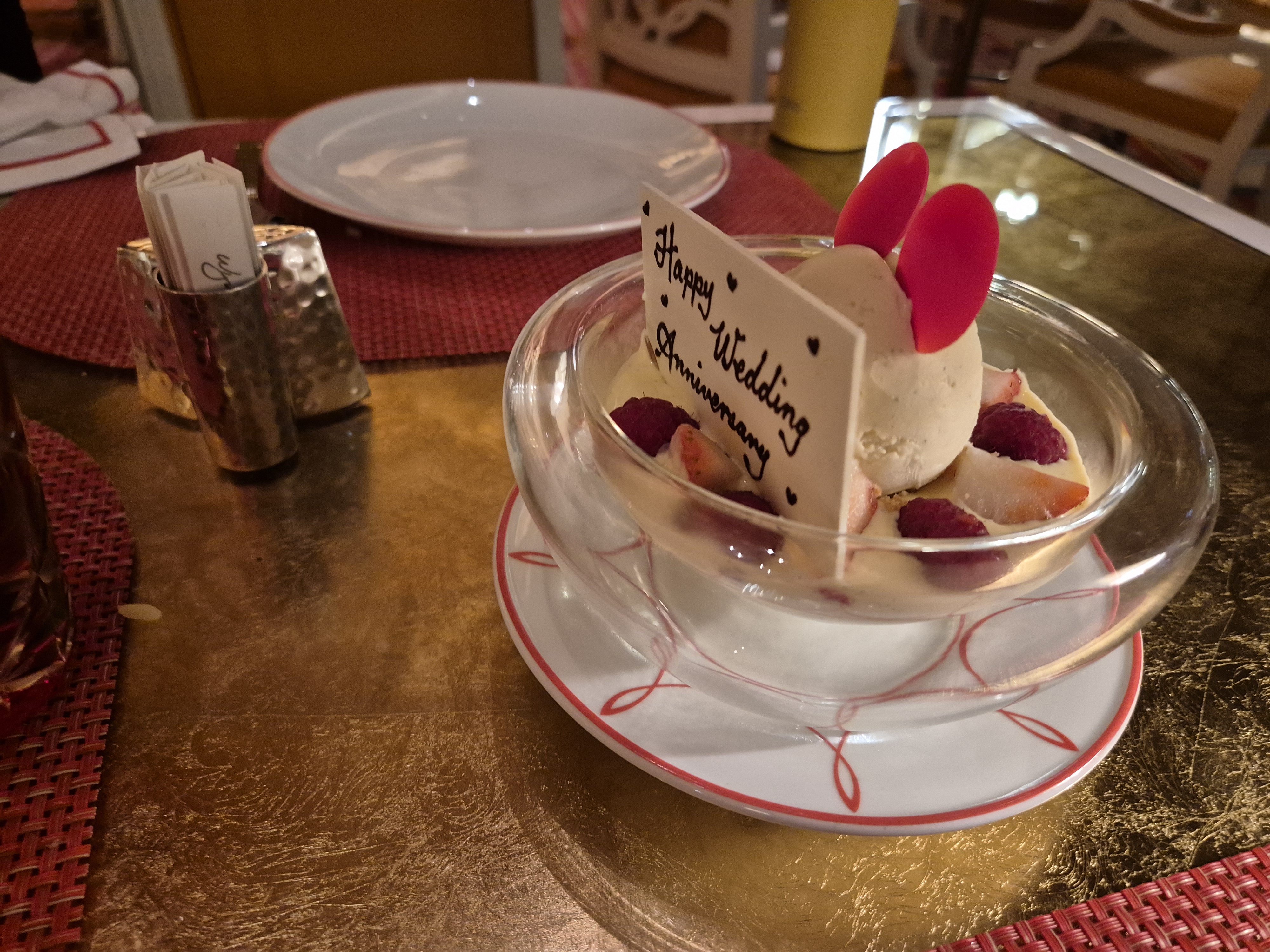 화장실을 다녀오니 미리 준비해주신 문구와 함께 아이스크림을 주었습니다. 정말 행복했습니다. 딸기와 라즈베리가 들어가 있었고 초코릿을 얹어주어서 달콤했습니다.
