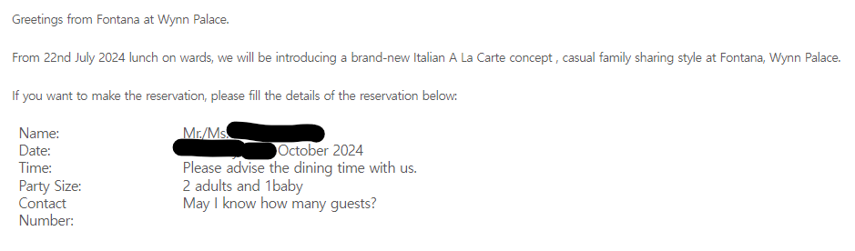 영어를 잘 못하는 관계로 chatgpt에게 몇월 몇일에 몇명 예약하고 싶다고 써달라고 했습니다. 훌륭하게 잘 써줬고 메일 보내니 생각보다 금방 답장이 왔습니다.