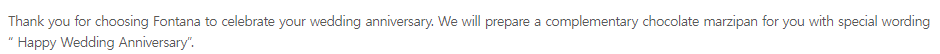 저는 결혼 기념이리라서 특별히 방문하는 거라고 하니 초콜릿 marzipan 을 준비해주겠다고 했습니다.