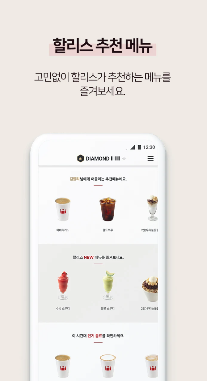 할리스 앱을 통해 어떤 기능을 이용할 수 있는지 알아보겠습니다.