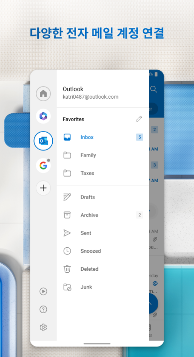 Q. 아웃룩 앱에서 여러 이메일 계정을 추가할 수 있나요?