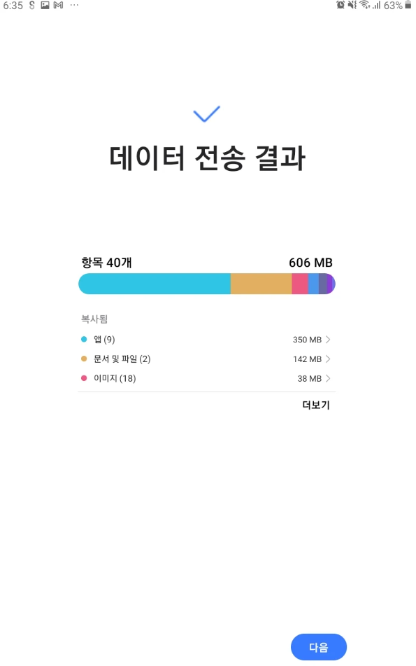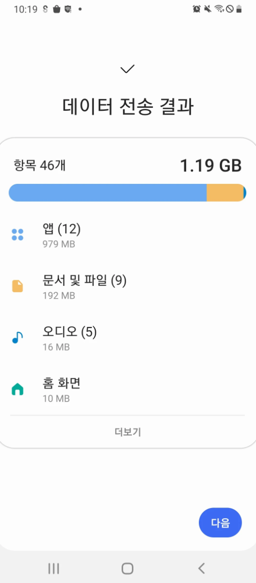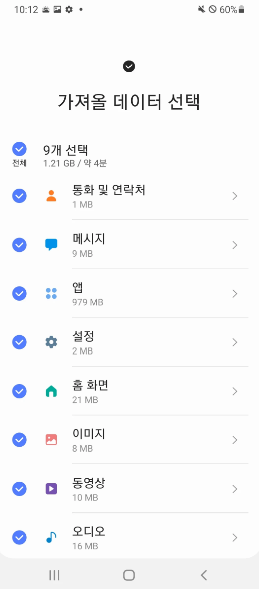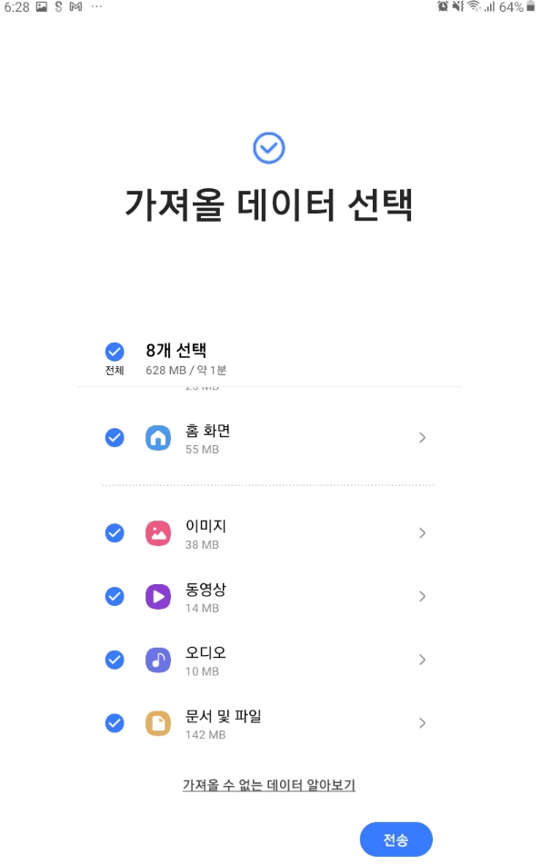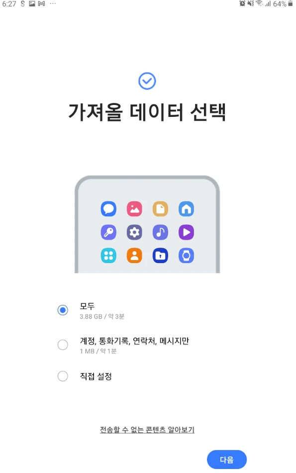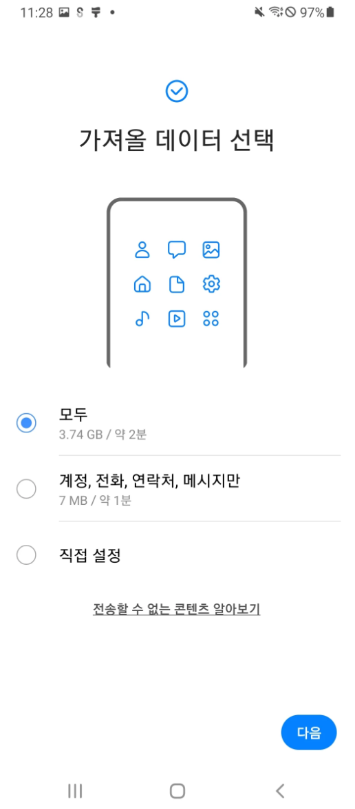 데이터 이전 방법 선택
