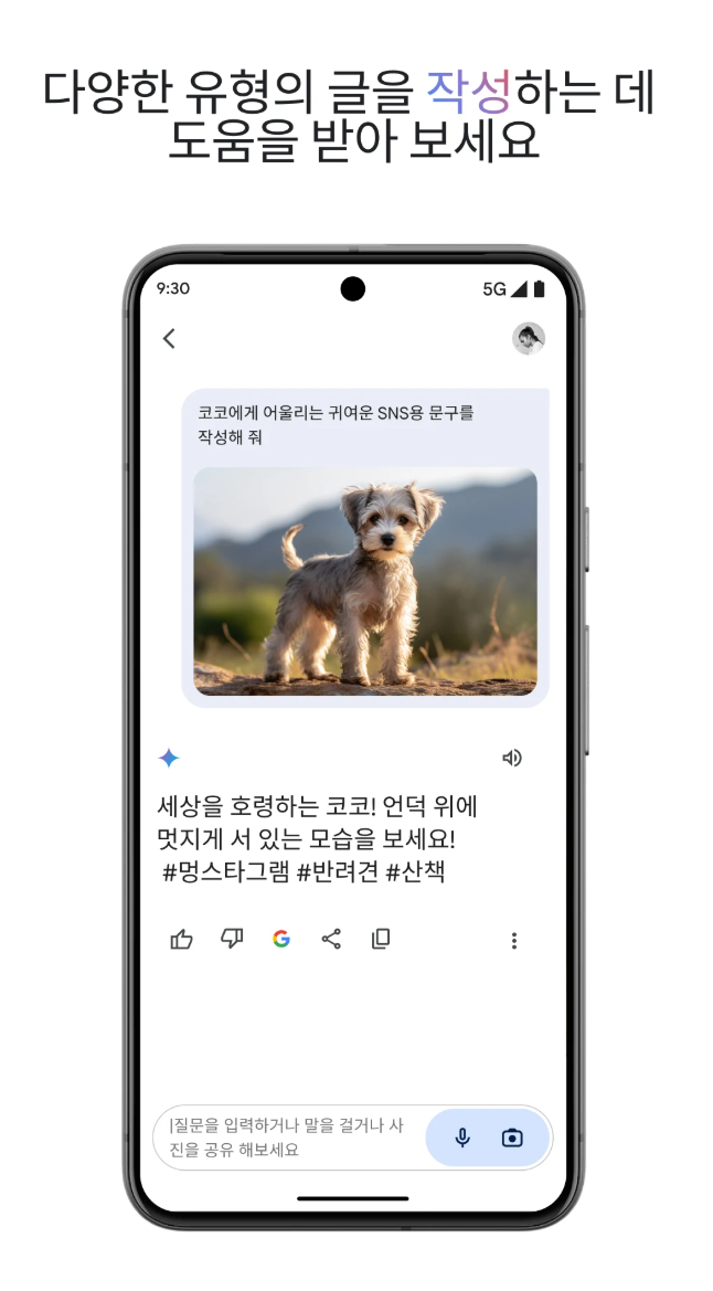 Gemini 어플은 글쓰기, 브레인스토밍, 학습 지원 등 다양한 기능을 통해 사용자의 창의적인 활동을 도와줍니다. 또한 Gmail 및 Google Drive의 정보를 신속하게 검색하고 요약할 수 있어 업무 효율성을 높여줍니다.