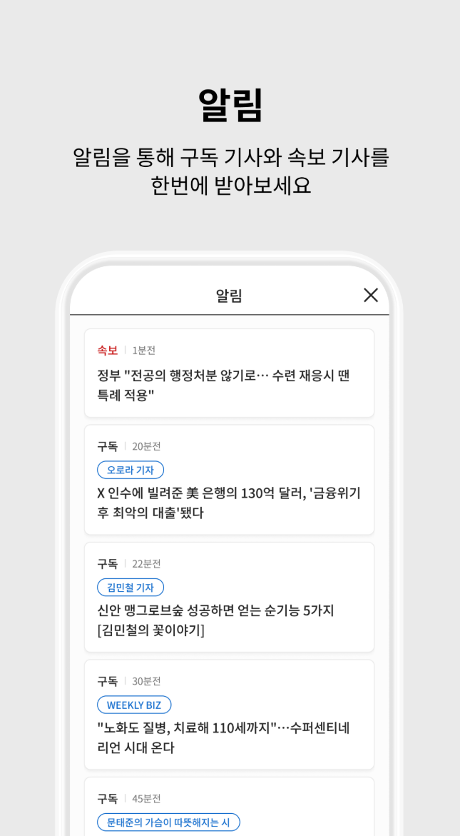| 알림 | 선택 | 뉴스 속보 제공 |