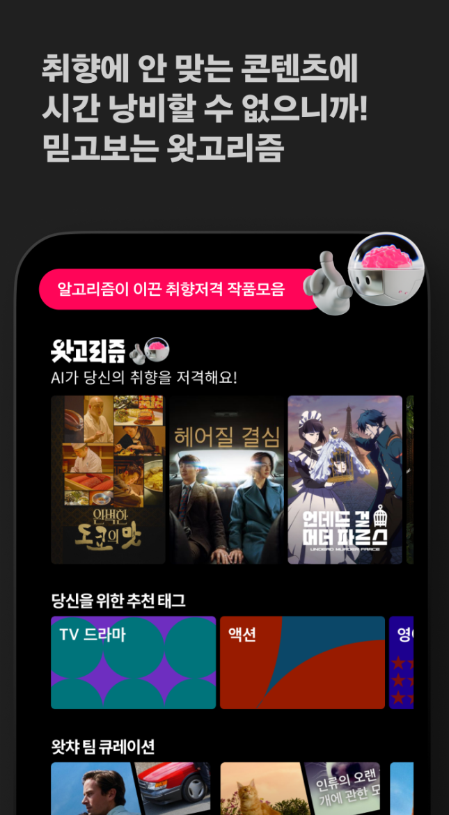 왓챠는 방대한 콘텐츠 라이브러리와 사용자 맞춤형 추천 시스템을 통해 누구나 만족할 만한 스트리밍 경험을 제공합니다. 7년 연속 브랜드 고객 충성도 대상 OTT 부문 1위를 차지한 이 어플은 신뢰할 수 있는 서비스와 다양한 혜택을 제공하여 사용자들의 기대를 충족시킵니다.