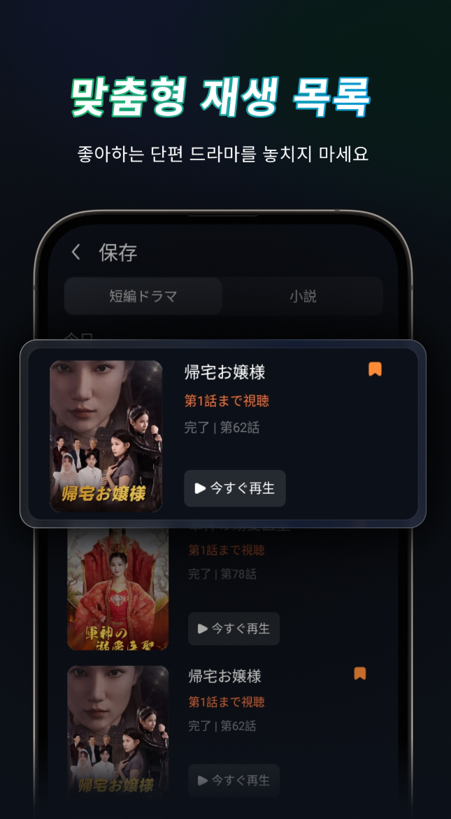 - 시청 진행 상황 기록: 시청 중인 드라마의 진행 상황을 자동으로 기록하여 중단 없이 이어서 시청할 수 있습니다.